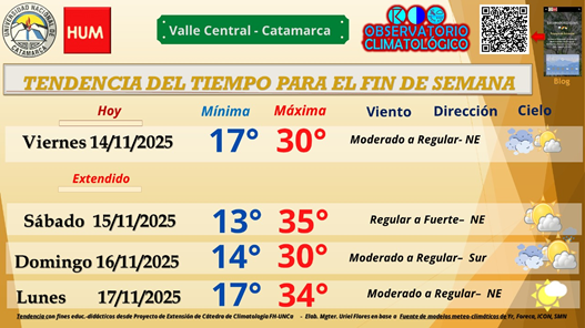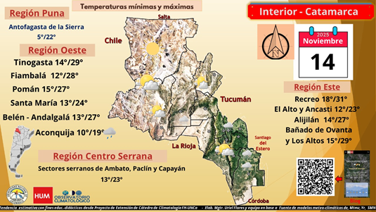 · Oeste: 12–29°C, con nubosidad variable en Aconquija.