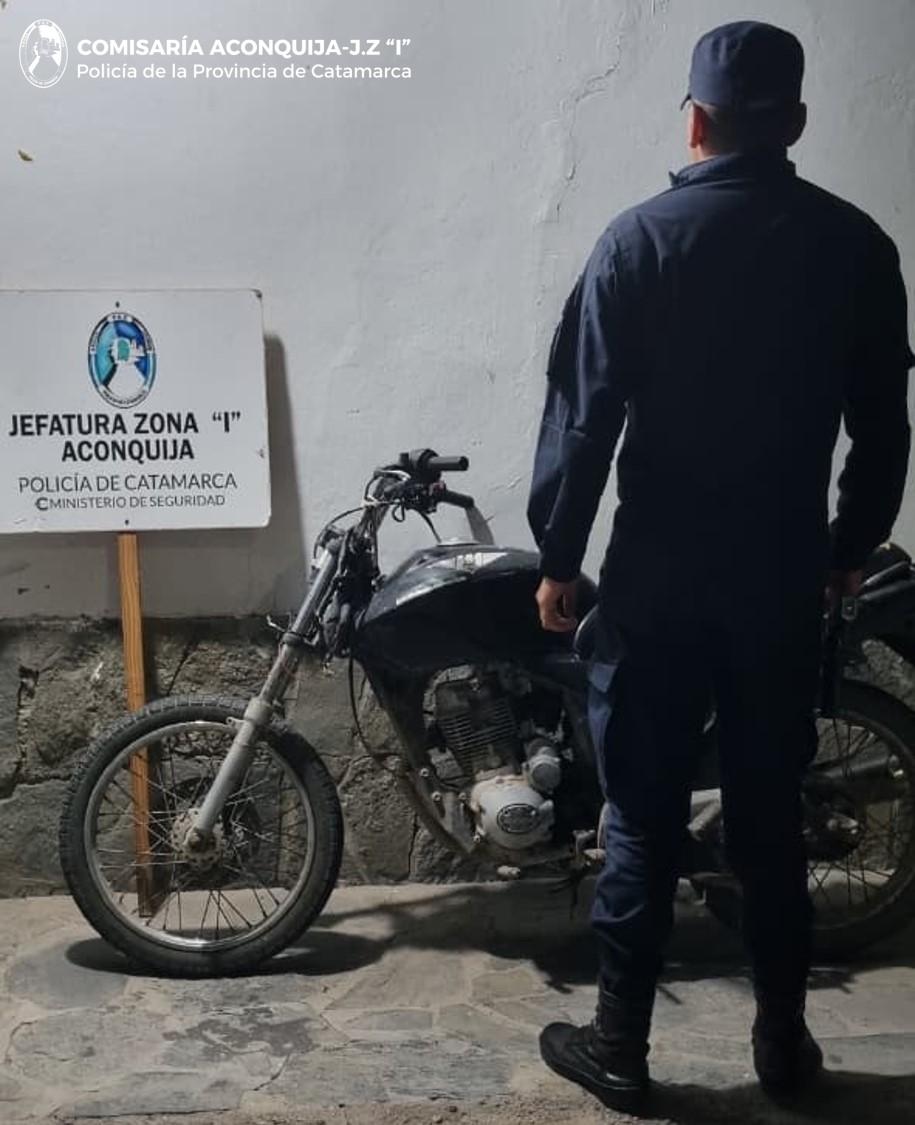 Anoche, a las 20:00, numerarios de la Comisaría de Aconquija se constituyeron en inmediaciones al Club Unión Aconquija, de esa localidad del Dpto. Andalgalá, donde habrían observado que una motocicleta Motomel 150 cc., de color negro, estaba abandonada en la vía pública, por lo que de inmediato y luego de consultar a sus pares de la División Sustracción de Automotores, los uniformados lograron establecer que el rodado contaría con un requerimiento Judicial solicitado por la Fiscalía N° 3 de la Provincia de Tucumán.