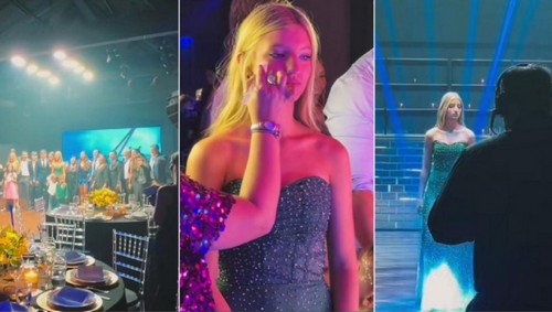 El momento cúspide de la noche fue, sin duda, la entrada de la cumpleañera, quien hizo su aparición a través de una enorme pantalla LED que se abrió para darle paso. Allegra entró bailando de la mano de su hermanito Luca, vestido a tono para acompañarla. La escena estuvo acompañada por bengalas electrónicas que le dieron un marco espectacular.