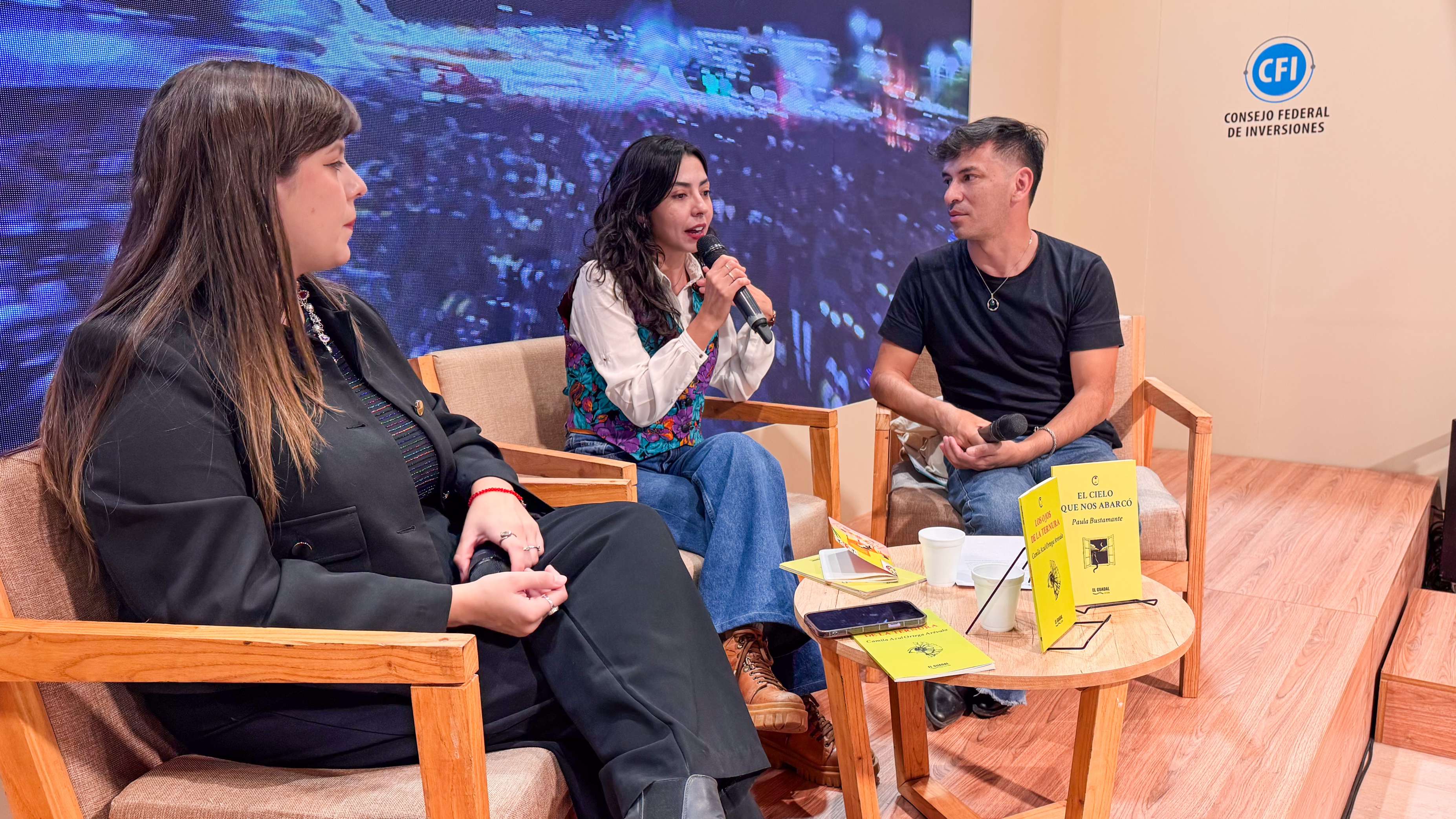 El Guadal Editora presentó también en la feria sus dos últimos poemarios, publicados bajo la colección Chinitas, que reúne poesía escrita por mujeres. Paula Bustamante habló de “El cielo que nos abarcó”, leyó algunos versos y compartió el trabajo detrás de su primer poemario en el que habla de pérdidas, duelos y orfandades desde una poética del dolor que busca también ser sanación.