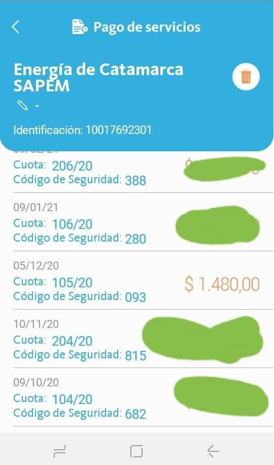 La vez pasada no pude pagar las boletas por que la app estaba con problemas y se borraron de la nada los códigos electronicos. Lo cual los cargue de nuevo.