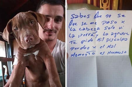 “Sabés que no se qué se me pasó por la cabeza. Solo vi a la perra y la agarré. Te pido mil disculpas. Perdón por el mal momento, es hermosa”, fueron las palabras del motochorro en la carta, escrita con marcador azul en un papel blanco.