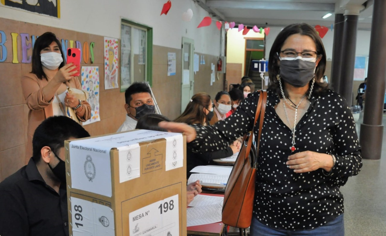 Luego de votar, la ex Gobernadora de Catamarca dialogó con la prensa, oportunidad en que destacó que el acto eleccionario “está muy bien organizado, respetando los protocolos sanitarios y se desarrolla en forma tranquila”.