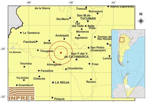 Fue el Epicentro a79 km al NO de San F. Del Valle De Catamarca; 142 km al N de La Rioja; 54 km al NE de Aimogasta.
