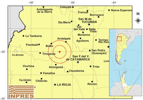 Ocurrió a las 01:56:23 horas y tuvo su Epicentro a 99 km al NO de San F. Del Valle De Catamarca; a 157 km al N de La Rioja y a 56 km al SE de Belén