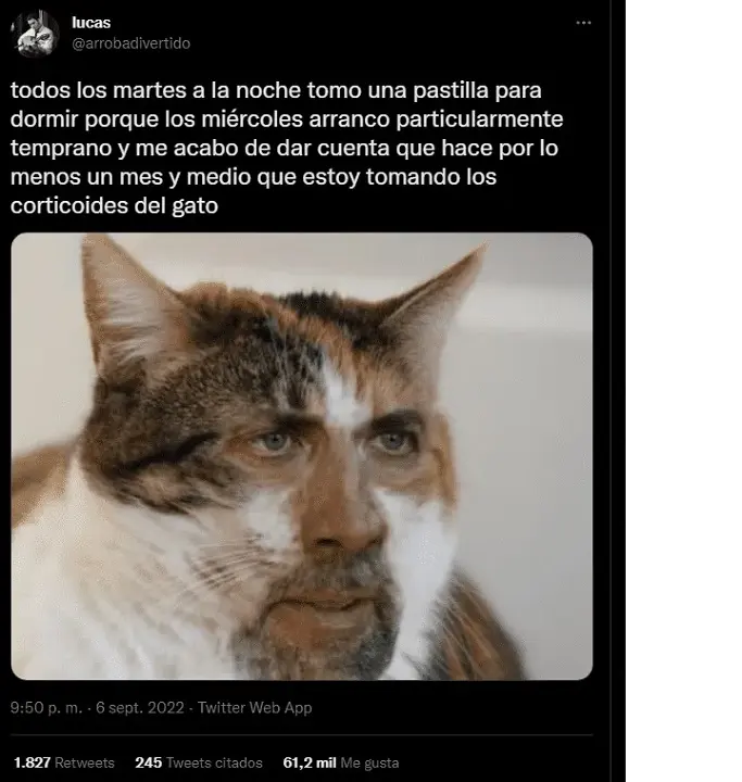 Y culminó: “Me acabo de dar cuenta que hace por lo menos un mes y medio que estoy tomando los corticoides del gato”.