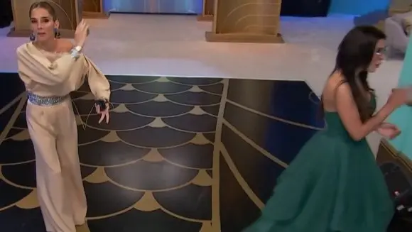 “Qué vergüenza”, se escuchó decir por lo bajo a la futura participante de El Hotel de los Famosos 2 cuando avanzaba con un súper vestido hacia el encuentro con la actriz.