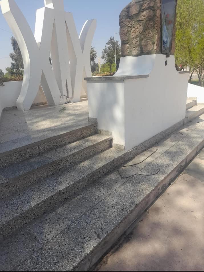 Rompieron el vidrio de la urna y partes de la estructura posterior en la mampostería.