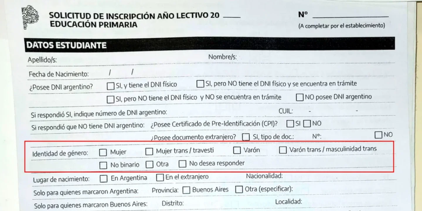 El gobierno bonaerense sumó una modificación a las planillas de inscripción que completan las familias a la hora de anotar a sus hijos en el nuevo año escolar, ya sea para el nivel inicial, primario o secundario. De cara al nuevo ciclo lectivo 2023, las fichas de las escuelas contarán con más opciones de género además de las tradicionales.