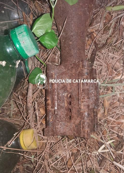 Personal de la Comisaría de Saujil, se constituyó en el lugar y constató que se trataba de un proyectil de mortero, calibre 81 mm, el mismo se encontraba debajo de una planta de Algarrobo, detrás de una gruta y oculto entre la maleza, que quedó en calidad de secuestro y resguardo.