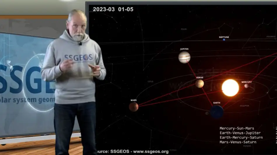 "Esta convergencia de dos conjunciones planetarias con la Tierra será muy crítica. Como resultado, podría haber un evento sísmico con una [intensidad] entre grande a muy grande, posiblemente alrededor del 3 o 4 de marzo", indicó en el canal de YouTube del Solar System Geometry Survey (SSGEOS).