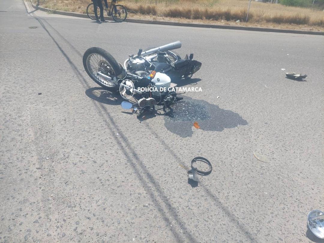Frank Damián Gómez (39), circulaba en una motocicleta Motomel S2 150 cc., dominio 563-LCH, de color blanco, en compañía de Victoria Carpio (34), y por motivos que se investigan colisionó con un automóvil Volkswagen Vento, dominio AA226EB, al mando de Lautaro Montero (24).