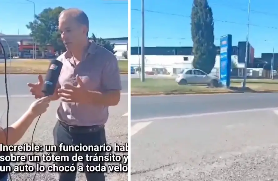 “Mirá, te doy un ejemplo muy sencillo, el mes pasado hubo un corte de energía en Alta Barda, donde está uno de los totems”, comentaba el funcionario. Y de fondo empezó a escucharse el ruido de un vehículo que comenzaba a derrapar. “La gente igualmente disminuía la velocidad, fijate que...”, prosiguió el hombre con su relato ante las cámaras, que se vio abruptamente interrumpido.