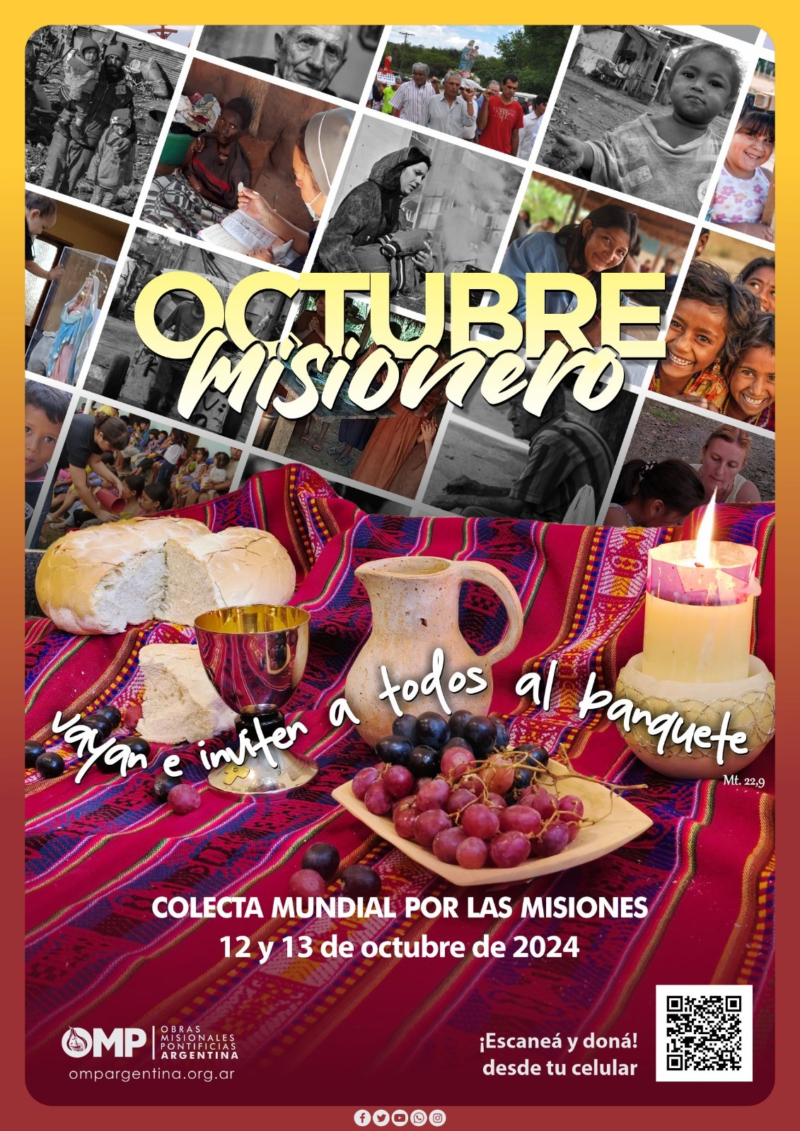Octubre es un mes de gracia, donde la Iglesia intensifica la animación, la formación y la cooperación misionera, tanto espiritual como material. Dentro del mes misionero, desde hace mucho tiempo se viene realizando la Colecta Mundial por las Misiones. Este año, en Argentina, será el fin de semana del 12 y 13 de octubre en todas las parroquias, capillas, comunidades y colegios.