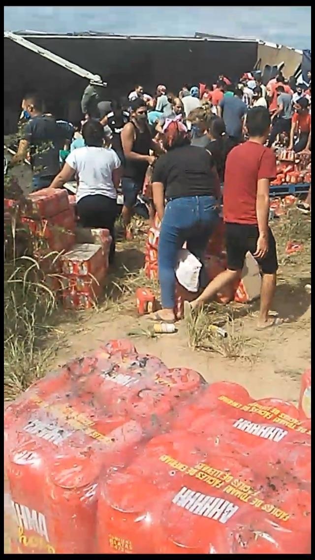 Ni lerdos, ni perezosos, los vecinos arribaron al lugar del accidente y saquearon al camión. Mire el video arriba a su derecha.