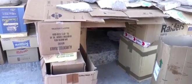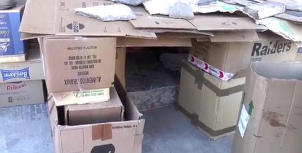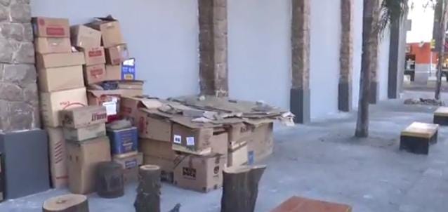 Se trata de un hombre que duerme en la Terminal de Ómnibus de Catamarca, sobre la Avenida Güemes. Una persona que trabaja diariamente en las inmediaciones comentó que, con este frío, el hombre duerme en un colchón y rodeado por cajas de cartón.
