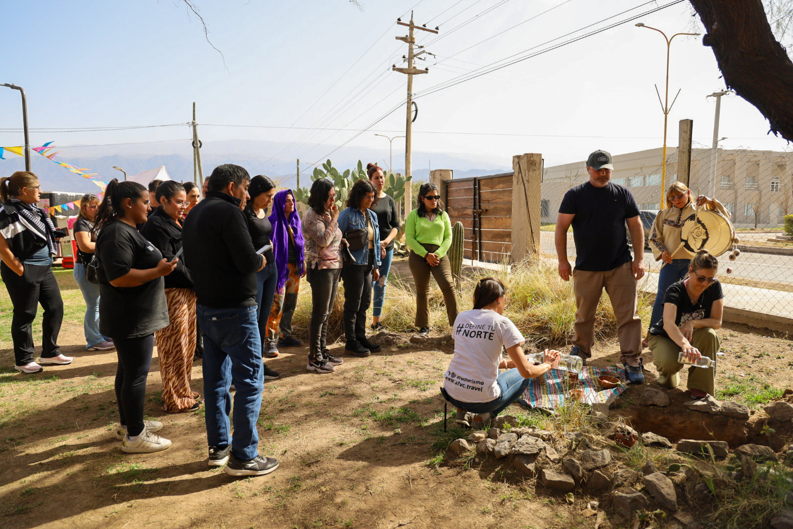 De esta manera, la coplera Mary Delgado, procedente de la localidad de Tatón, Tinogasta, fue quien dirigió el ritual en el que turistas, residentes y feriantes realizaron la ofrenda en el pozo abierto en la tierra, dejando frutos, vino, alcohol entre otros alimentos como símbolo para devolver a la tierra parte de lo que nos da durante el año.
