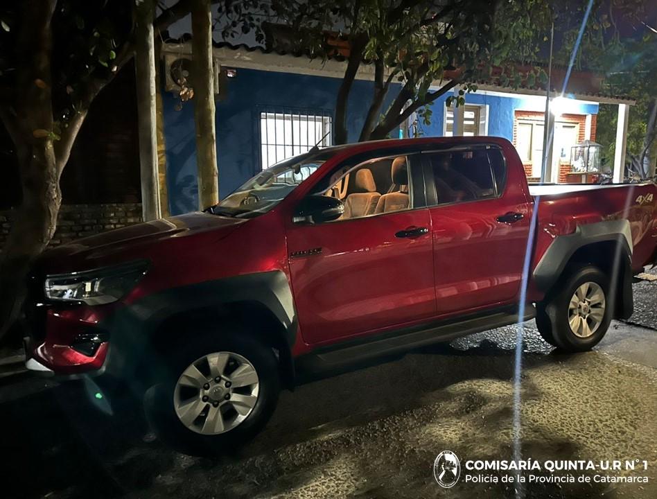 A las 02:15 de la madrugada de hoy, mientras personal de la Comisaría Quinta realizaba recorridos preventivos por el Antiguo Camino a El Rodeo, procedió al secuestro de una camioneta Toyota Hilux, de color rojo, al mando de un joven de 27 años de edad.