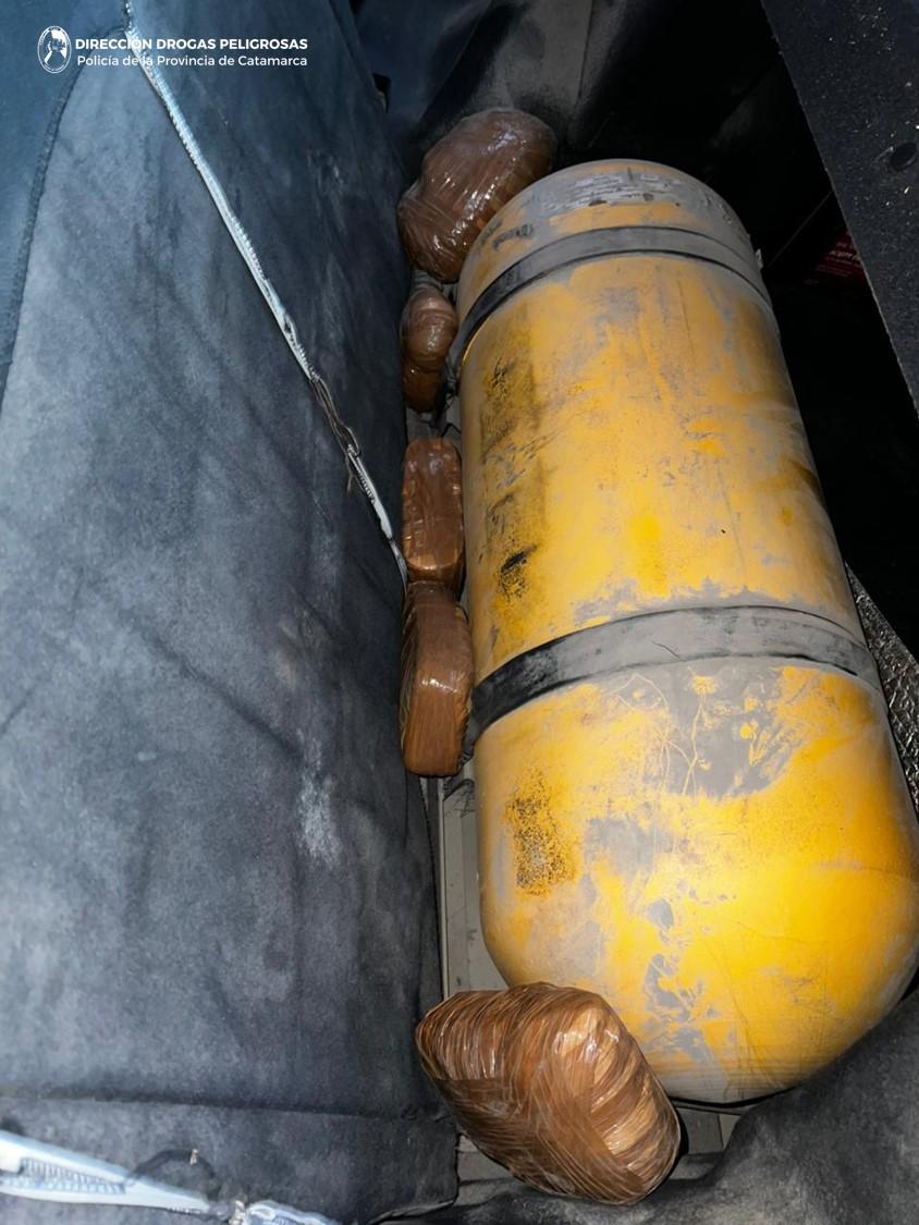 En la mañana de hoy, mientras personal de la División Canes Antinarcóticos, dependiente de la Dirección Drogas Peligrosas, con colaboración de sus pares de la Dirección Seguridad Vial de la Policía de la Provincia, realizaba control vehicular e identificación de personas en el puesto caminero “La Viña”, ubicado en la Ruta Nacional N° 38, de esa localidad del Departamento Paclín, procedió a controlar un automóvil Chevrolet Prisma Joy, en el que circulaban dos hombres y una mujer de 33, 73 y 31 años de edad respectivamente, oriundos de Salta.
