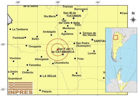 Fue el Epicentro a 35 km al NO de San F. Del Valle De Catamarca; a 71 km al N de Chumbicha y a153 km al NE de La Rioja;