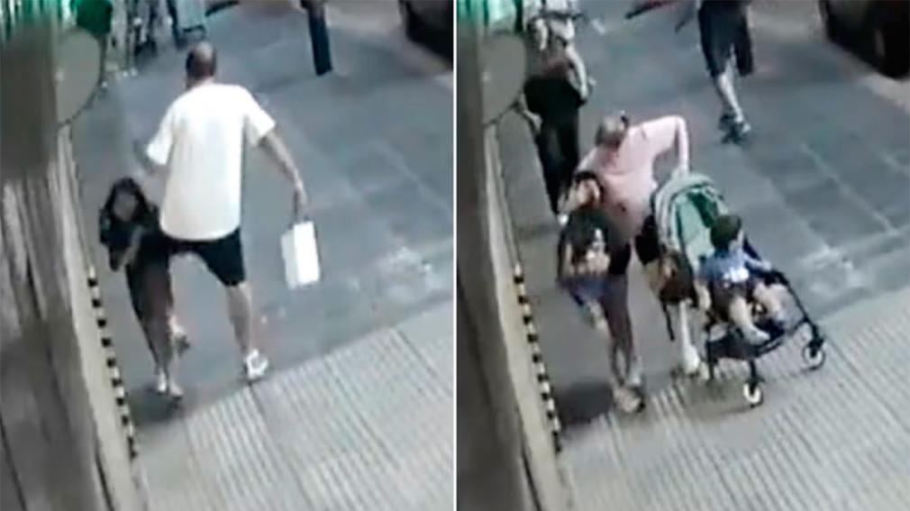 Todo quedó filmado por una cámara de seguridad de la cuadra. En las imágenes se puede ver con claridad la secuencia completa. Una mujer, que llevaba un cochecito con un bebé, intentó interceptar al agresor pero el hombre la esquivó. Por su parte, la mamá prefirió acercarse a su hija para ver cómo estaba.