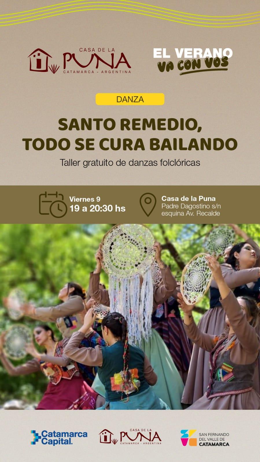 Asimismo, para los que quieran aprender a bailar, disfrutar del baile y conocer acerca de la fitoterapia local (el uso de las plantas medicinales), de 19 a 20.30 hs. se dictará un taller abierto de danzas folklóricas denominado “Santo remedio, todo se cura bailando”, dictado por la prof. Maria de los Ángeles Rodríguez. “Queremos sumar a la danza la investigación que vengo realizando hace un par de años con Yuyeras y está temática que nos atraviesa, para conocer y aplicar la herbolaria local. También analizaremos canciones del repertorio folklórico y haremos algo de ciencia perceptiva con yuyitos locales para que la experiencia no quede solo en el cuerpo en movimiento sino también en las sensaciones”, indicó la docente y bailarina. Consiste en una propuesta gratuita y para todo público.
