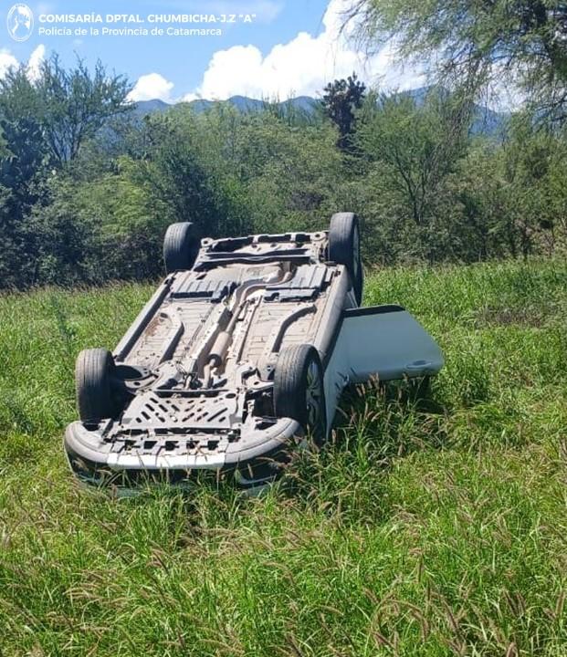 En la tarde del Domingo, a las 15:30, en el Km. N° 519, de la Ruta Nacional N° 38, en la localidad de Chumbicha, Departamento Capayán, se registró un siniestro vial protagonizado por un automóvil Peugeot 208, dominio AC380LQ, de color blanco, en el que circulaba Nadia Yanina Nieva (47), quien por causas que se tratan de establecer, perdió el control del rodado y volcó a un costado de la banquina.