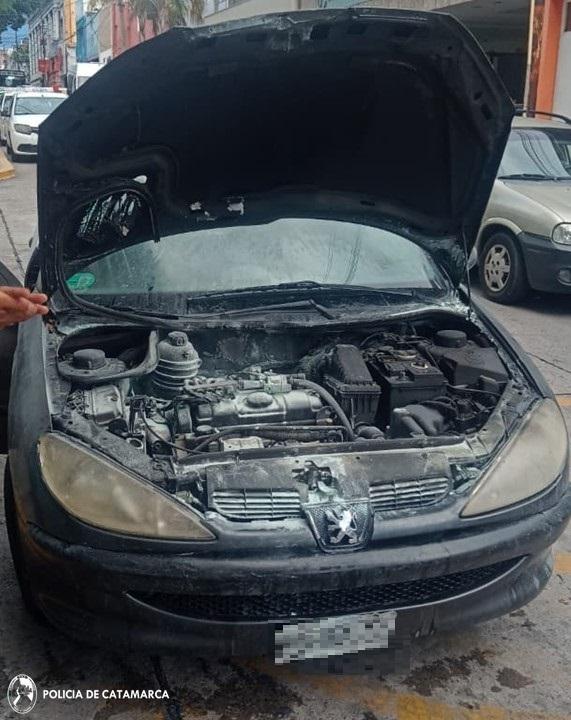 Una vez en el lugar, los policías constataron que, por causas que se investigan, el foco ígneo se habría originado en el motor de un automóvil Peugeot 206, en el que circulaban dos personas del sexo masculino de 28 y 51 años de edad.