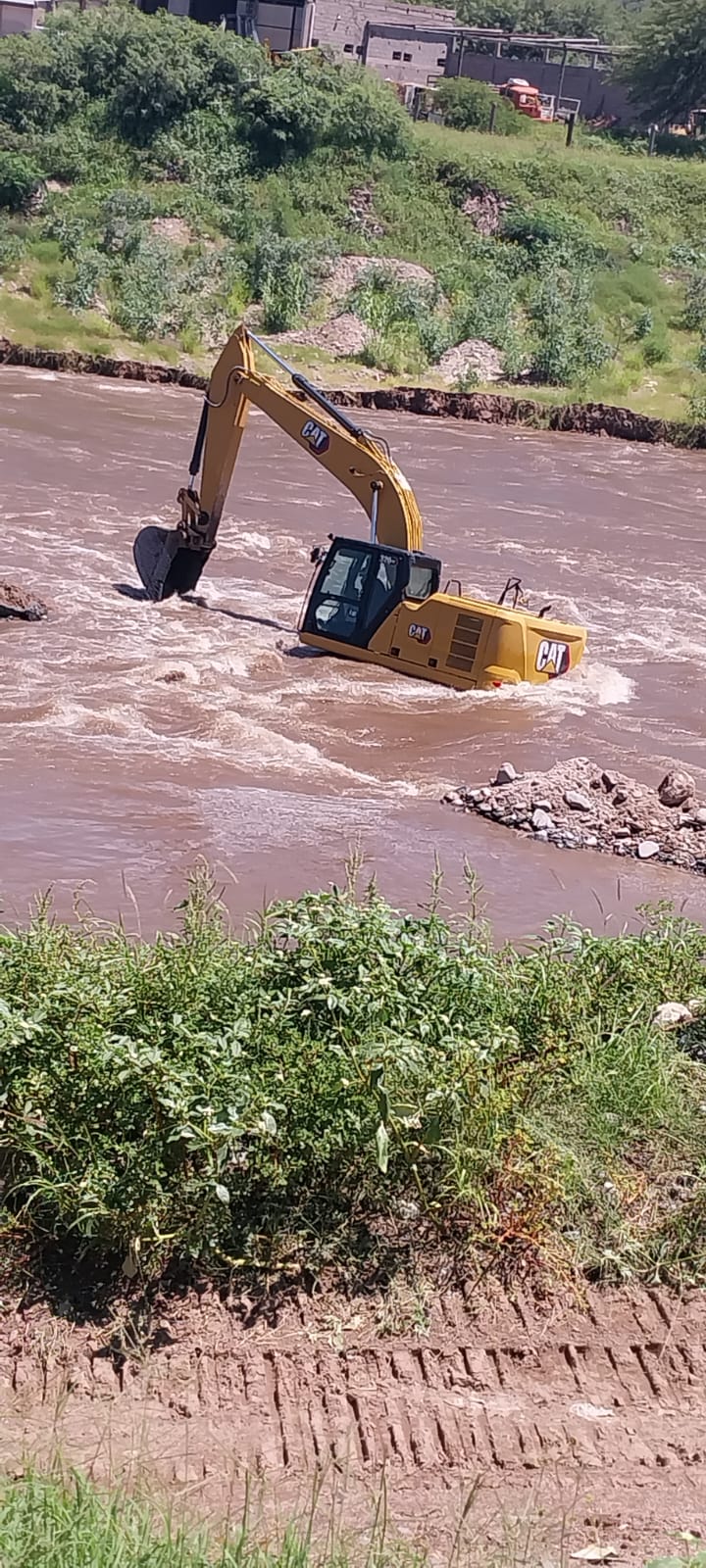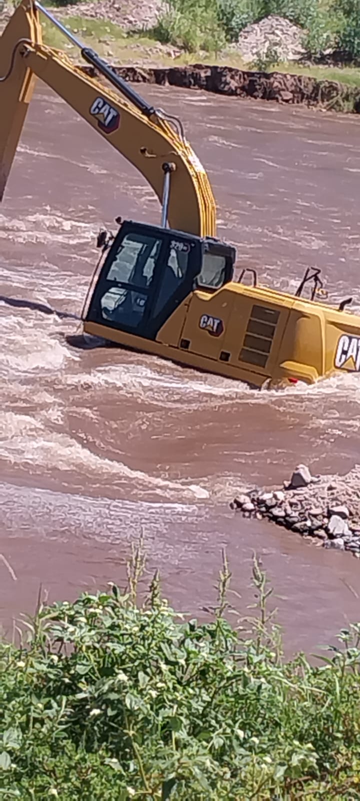 Según informó un lector de catamarcaya, durante el mediodía de este Lunes, un maquinista se metió al lecho del Río del Valle, e intentó reforzar la contención para que el agua no afectara a los vecinos, pero quedó atrapado por el agua.