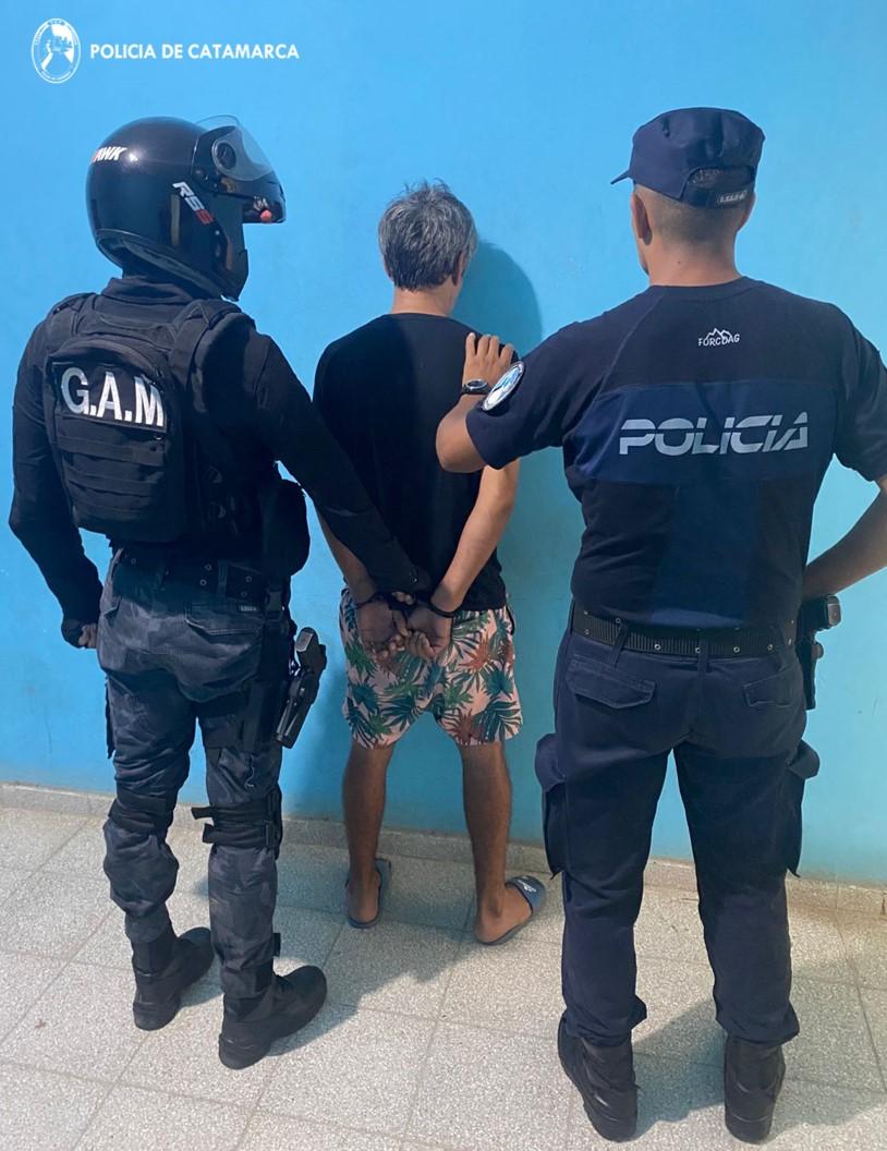 A las 11:30 de la mañana de hoy, mientras personal del GAM-PAMPA realizaba recorridos de prevención por la avenida Félix Avellaneda, de la localidad de Sumalao, Departamento Valle Viejo, aprehendió a un sujeto de 30 años de edad, quien habría agredido verbal y físicamente a su pareja, una joven mujer de 29 años de edad.