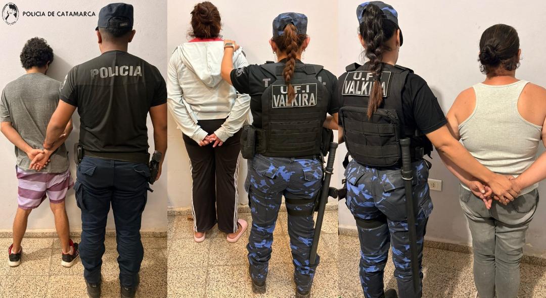 En la tarde ayer, a las 18:40, efectivos de la Comisaría de Villa Dolores, conjuntamente con sus pares de los Grupos infantería de Zona Norte y de la Unidad Femenina de Infantería (UFI-Valkira), se hicieron presentes en las instalaciones de la Unidad Judicial N° 10, donde procedieron a la demora de un adolescente de 15 años de edad y a la aprehensión de un joven de apellido Aragón (25) y de dos mujeres de apellidos Galván (33) y Castro (38), quienes habrían causado un desorden en el lugar, agrediéndose físicamente entre sí.
