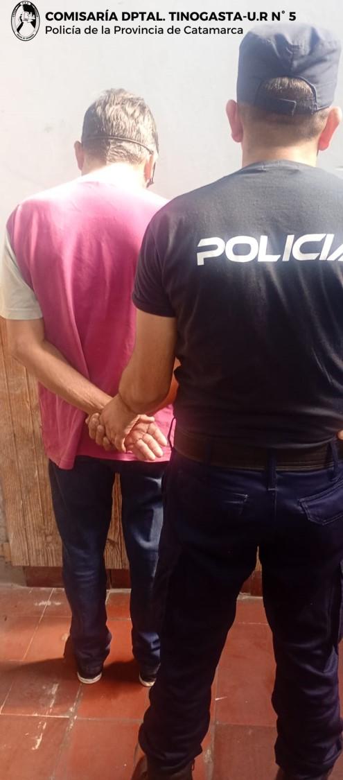 En la mañana de hoy, a las 10:30, numerarios de la Comisaría Departamental Tinogasta, en esa ciudad del Departamento homónimo, arrestaron en averiguación del hecho a un hombre de 67 años, en virtud de que obraba con un requerimiento Judicial por el supuesto delito de violencia de género.