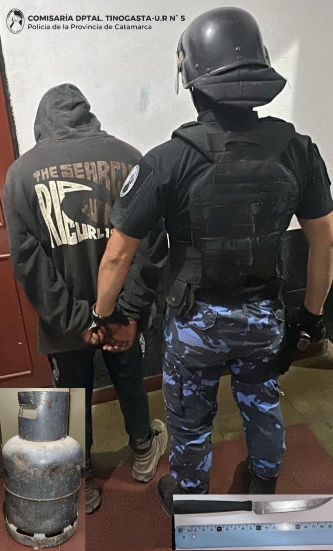 En el lugar, los policías procedieron a la detención de un sujeto de apellido Perea (26), quien contaba con un requerimiento Judicial por el supuesto delito de lesiones leves calificadas por el uso de arma, en calidad de autor. Asimismo, los uniformados recuperaron una garrafa de gas de 10 kilos, que estaría relacionada con un ilícito denunciado por un hombre mayor de edad, por lo cual el elemento quedó en calidad de secuestro, al igual que un cuchillo que el ahora detenido tenía entre sus prendas de vestir.