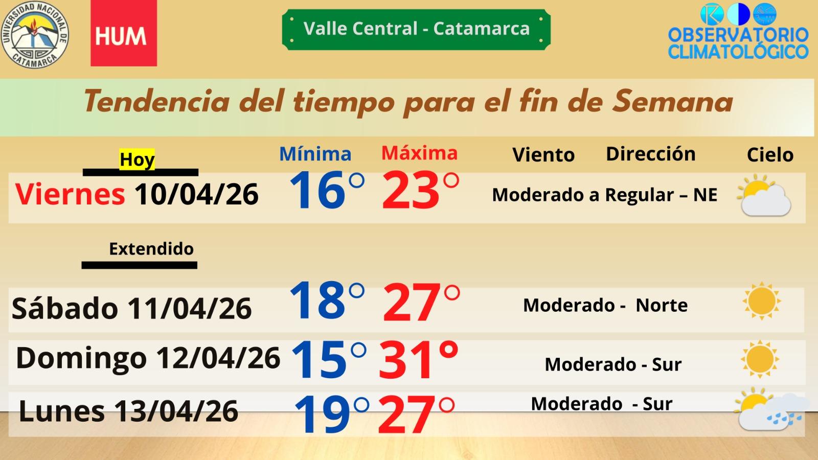 FIN DE SEMANA CON REPUNTE TÉRMICO Y GIRO OTOÑAL: estabilidad, ascenso y posterior descenso en Catamarca