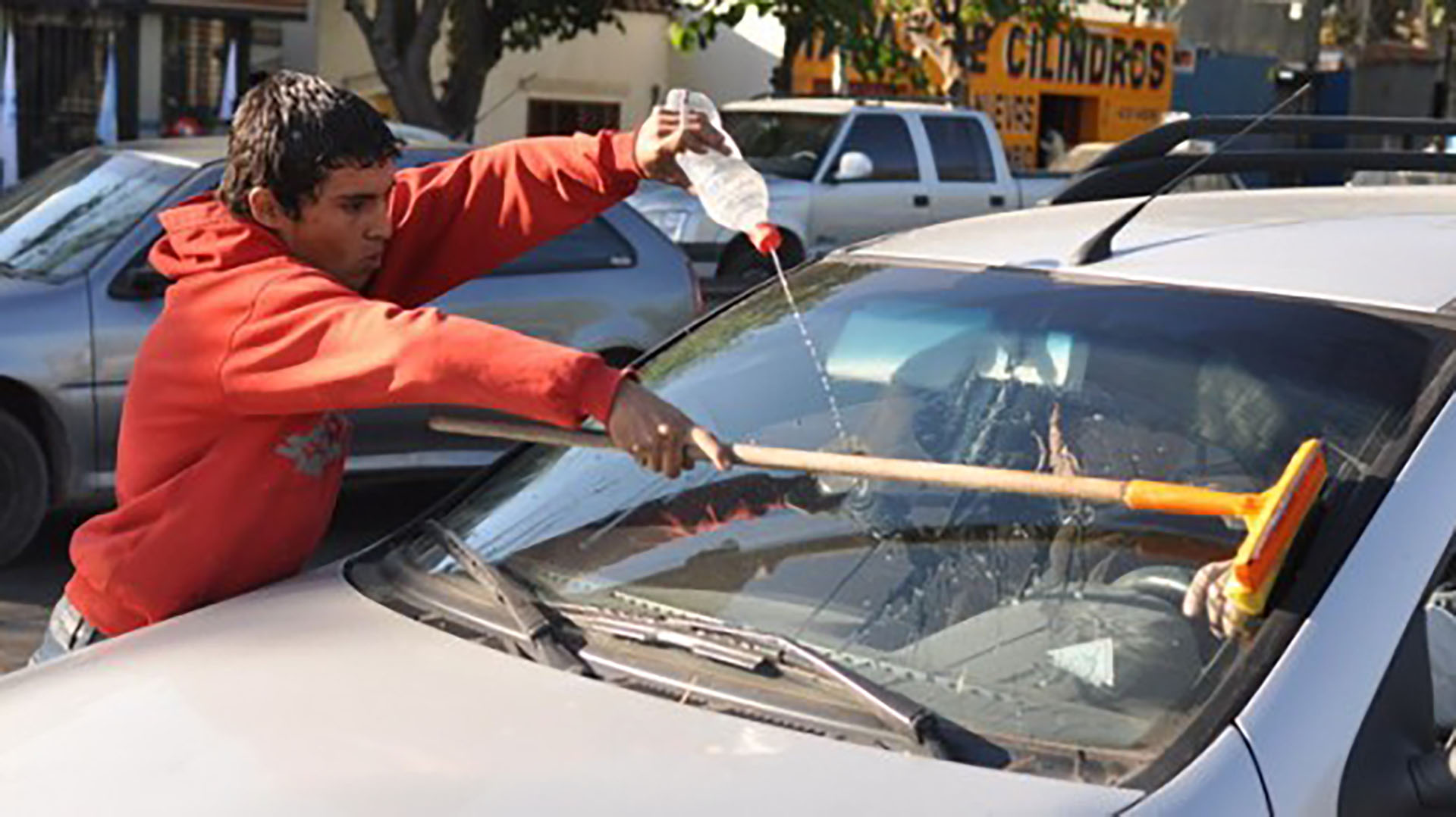 Limpiavidrios lo agredieron y golpearon el vehículo con un palo